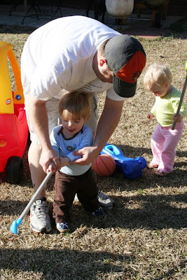 For many of you that know me personally, you have probably been guessing how long it was going to take for me to get a set of golf clubs into the Trioux's hands. Well, I figured 18 months would be a pretty good age. Being a former teaching pro myself, I am going to try not to be one of "those dads" and force them to play a certain way and practice all the time, but I have to figure out a way to pay for college at some point.